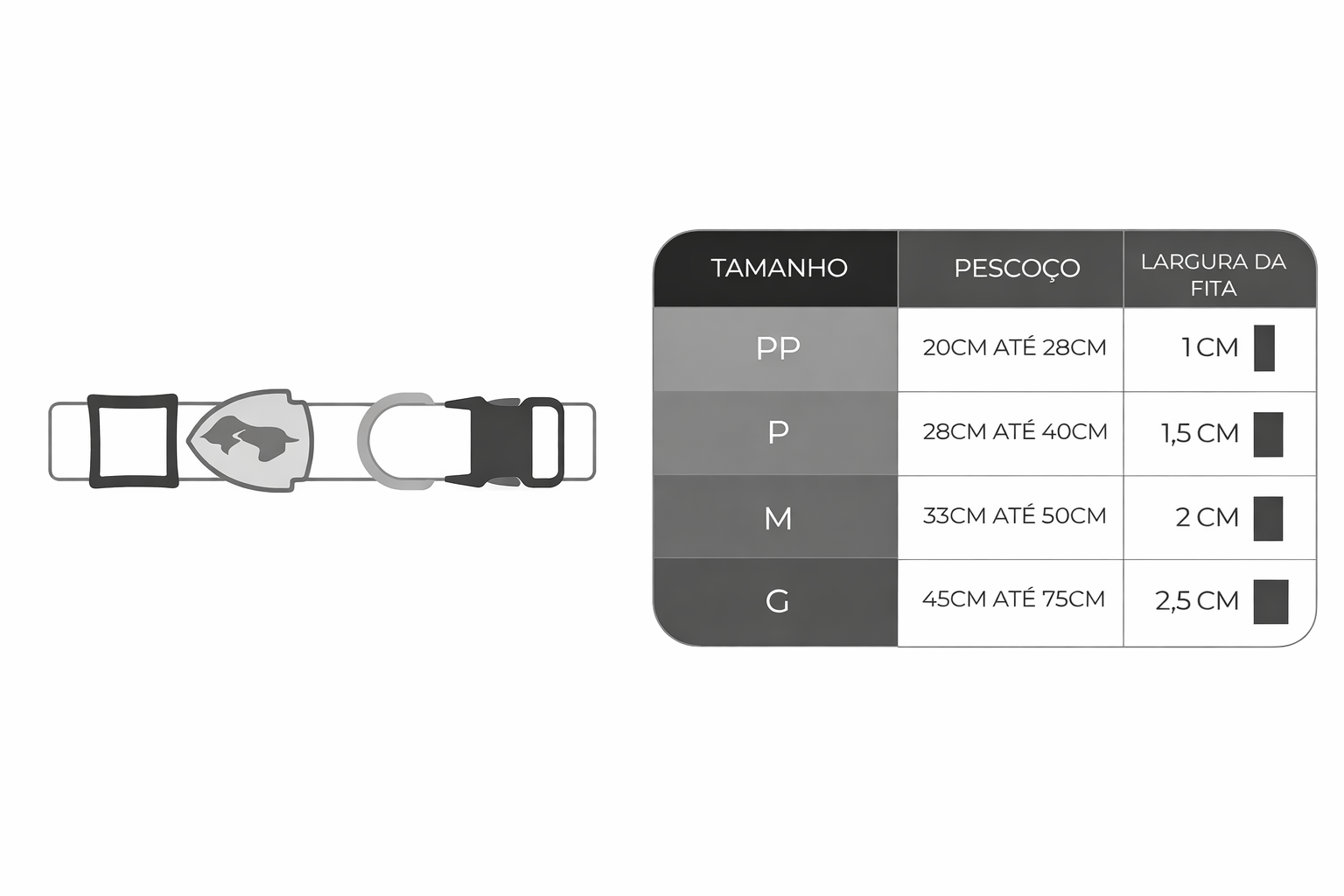 • Totalmente ajustável, permitindo encaixe ideal no pescoço do pet